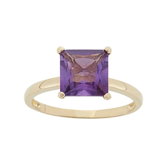 A princess-cut amethyst stone gives this 10k gold ring dazzling beauty.