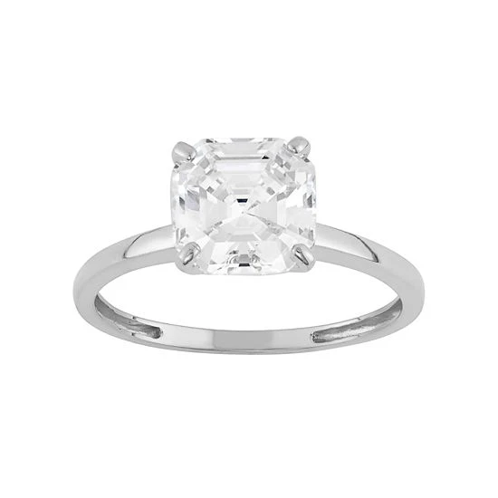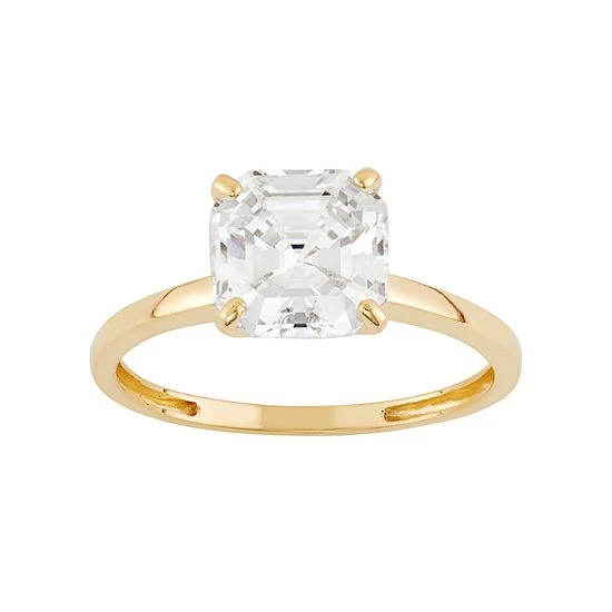 She won’t be able to say no when you present her with this 10k gold engagement ring. An asscher-cut cubic zirconia stone makes it an exquisite choice.