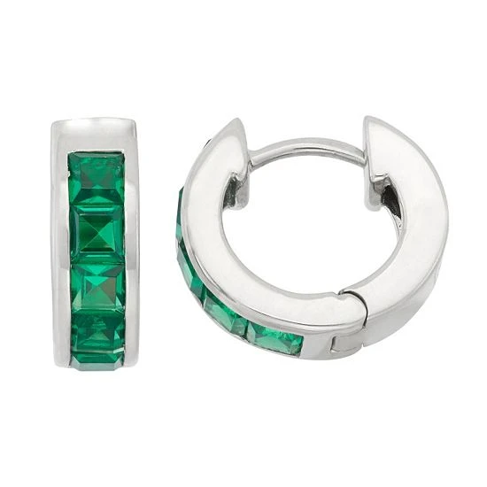 Add a hint of sparkle to any look with these lab-created emerald huggie hoop earrings.