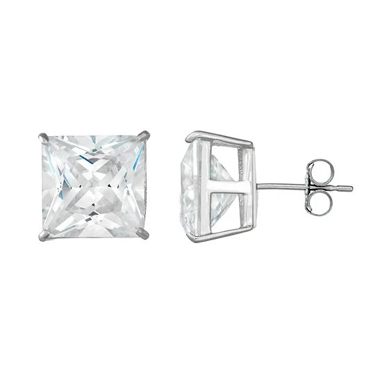 Adorned with princess-cut cubic zirconia stones, these 14k white gold stud earrings offer classic styling.