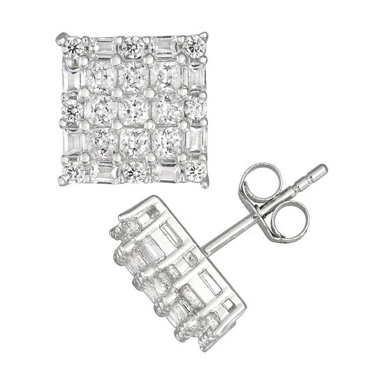 Achieve a bold look when you accessorize with these men’s square stud earrings, featuring eye-catching cubic zirconia stones.