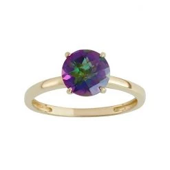 A round-cut Mystic Topaz stone makes this 10k gold ring a captivating addition to any ensemble.