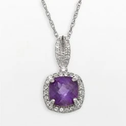 Adorned with amethyst and lab-created white sapphire stones, this sterling silver square halo pendant is absolutely dazzling.