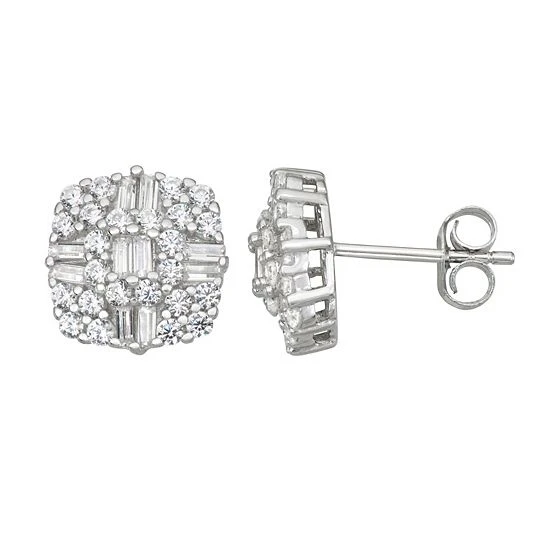 These gorgeous sterling silver cubic zirconia accent baguette stud earrings are the perfect way to finish any outfit.