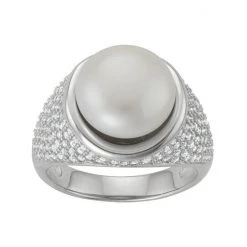 Designed with a lustrous freshwater cultured pearl and cubic zirconia accents, this sterling silver ring makes a captivating choice.