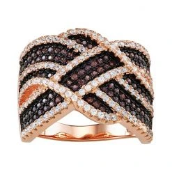 Covered with white and mocha-colored cubic zirconia stones in a modern crossover design, this sterling silver ring is simply stunning.