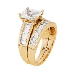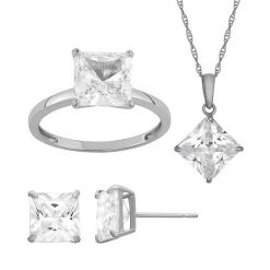 Designs By Gioelli 14k Gold Over Sterling Silver Round Solitaire Ring, Necklace And Stud Earring Set