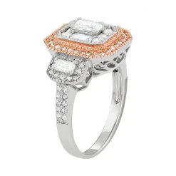 Designs By Gioelli Two Tone Sterling Silver Cubic Zirconia Cluster Halo Ring