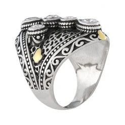 Designs By Gioelli Two Tone Sterling Silver Faceted Stone & Filigree Cross Ring